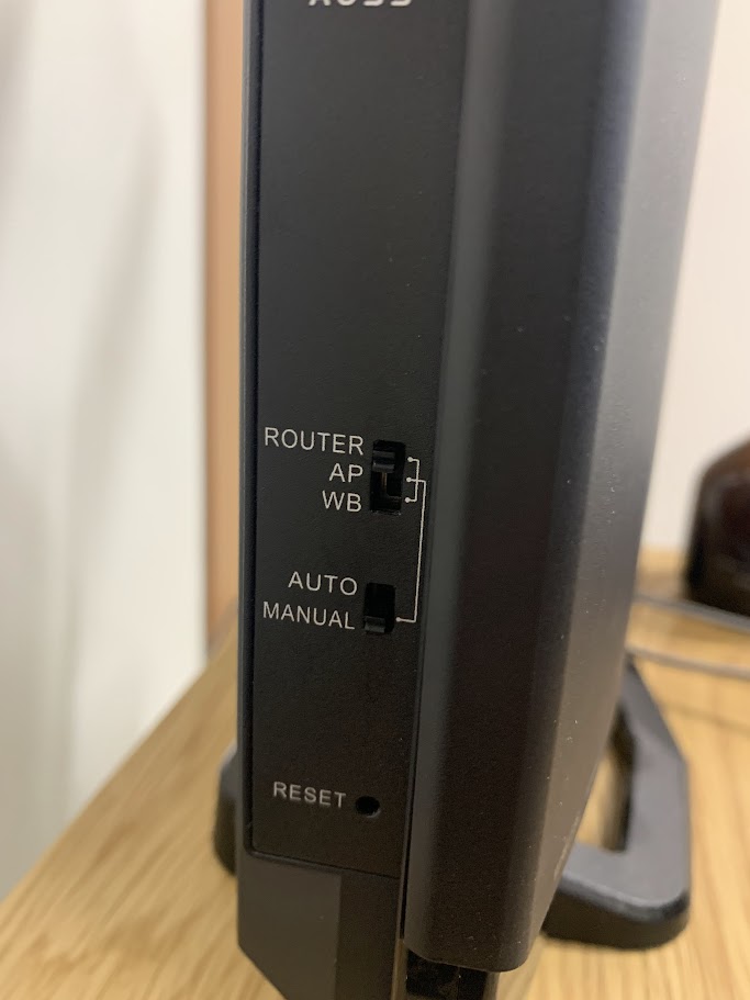 AUTOモードで使用する場合は、勝手にルーターかアクセスポイントか判定してくれますが、意図的にAPモードで使用する場合は、スイッチをMANUAL側に合わせて、APに合わせる必要があります。